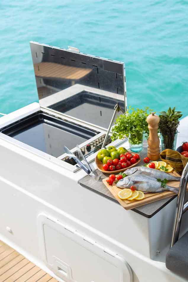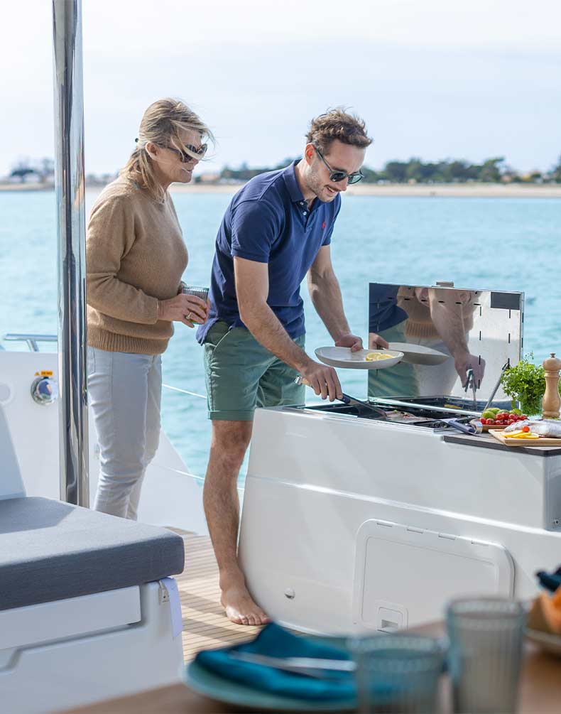 Easy and convivial! The plancha/BBQ lets you cook on deck without messing up your galley.